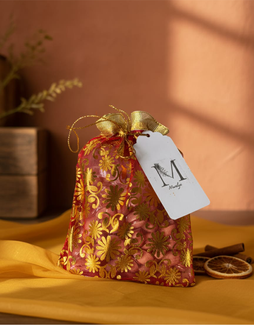 Muraliya’s Royal Pista Potli is crafted for those who cherish elegance. Filled with handpicked pistachios, it is the perfect blend of luxury and tradition, making every celebration truly regal.